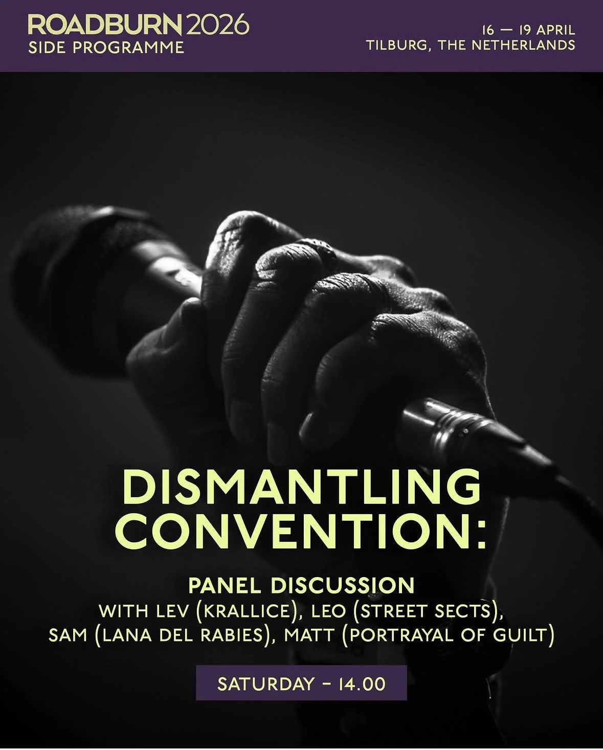Sam An aka Lana Del Rabies will join the Roadburn 2026 Side Programme on the panel Dismantling Convention, on navigating the music industry through unconventional means. She will be joined by members of Street Sects and Portrayal of Guilt.